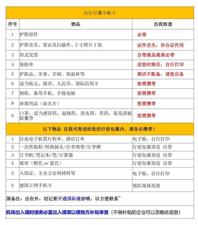 5.請按需攜帶參展用品,如名片、宣傳冊、訂書機、計算器、筆、本子等。