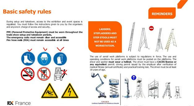 法國勞保展 Expoprotection 是世界專業勞保展將于2024年11月5-7日在Paris Porte de Versailles – Pavilion 1舉辦,本次展會要求展商們在搭建布展期間均需要佩戴安全帽,防護鞋和手套,未佩戴的人員不得進入展館,請各位展商提前準備好相關物品。