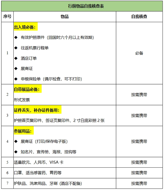 注2:展后有商務拜會行程的,請帶上客戶邀請函備用;