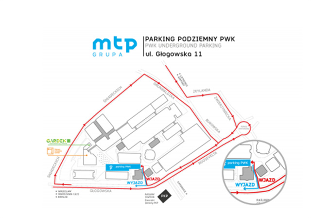 PWK 停車場 PWK 地下停車場,位于 11 G?ogowska Street,波茲南展覽中心 2 號館后面。停車場入口在波茲南火車站對面