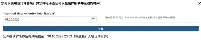 請注意!持統(tǒng)一電子簽證在俄羅斯聯(lián)邦的可逗留時(shí)間不超過30天 并不意味著可以逗留720小時(shí)(24小時(shí)x30)的凈時(shí)間。入境日和離境日算作2天。